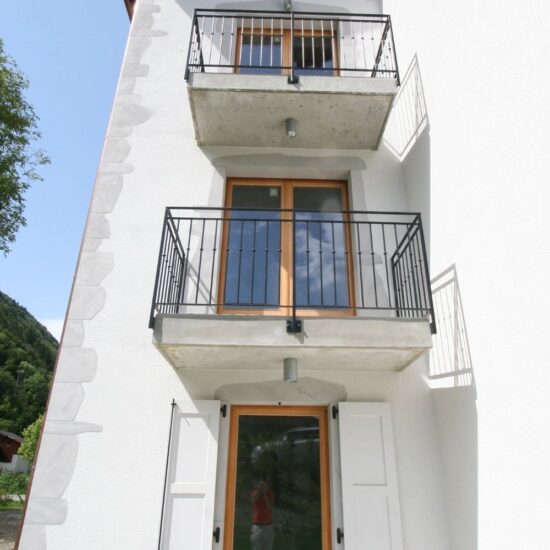 - « la maison forte », ancienne maison fortifiée, comportant un rez, deux niveaux supérieurs et un comble. Cette partie découpée au fil du temps comporte 6 logements et un comble, desservis par un escalier circulaire en pierre. Le projet prévoit de vider le bâtiment, et de recréer à chaque niveau 1 logement, y compris en comble, soit 3 logements au total.