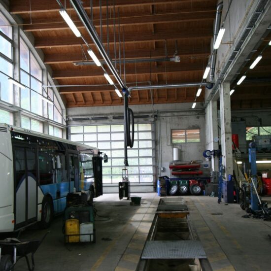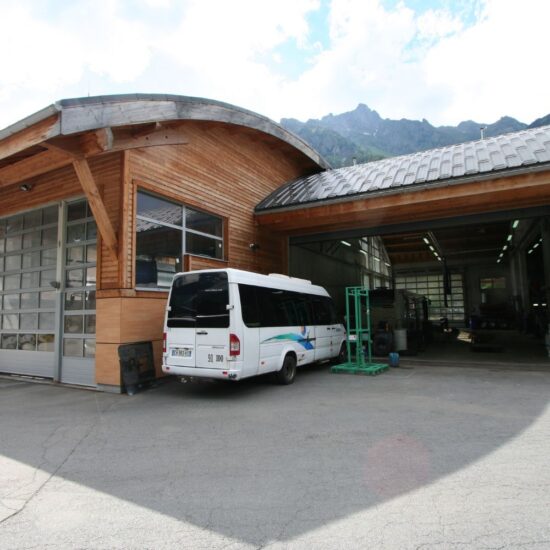 Atelier mécanique avec 2 fosses : 250 m² ; Aire de lavage couverte et fermée : 110 m²