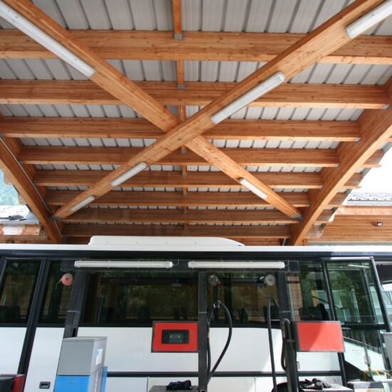 Stationnement véhicules légers : 30 m² ; Stationnement fermé 2 bus : 140 m²