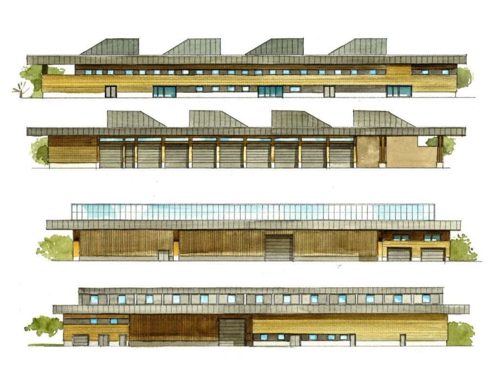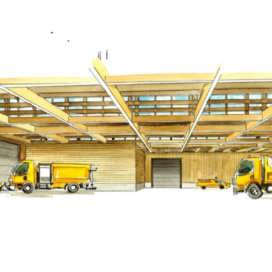 Dans le respect du développement de la filière bois dans laquelle le CG74 s’est engagé : le bois est valorisé tant structurellement, qu’en parement, que pour la chaufferie. Nous préconisons des matériaux et solutions simples et pérennes tant en extérieur qu’en intérieur comme des longrines béton périphériques protégeant les pieds de bâtiment, de grands débords de toiture de 4 mètres qui abritent les façades comme les utilisateurs.