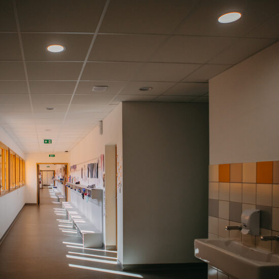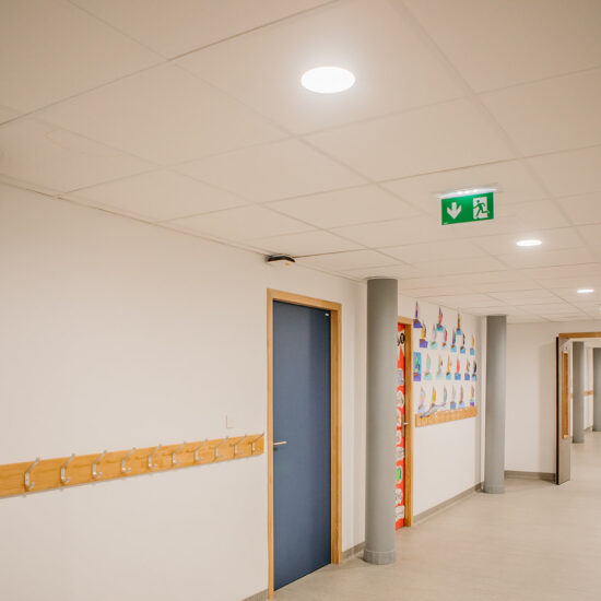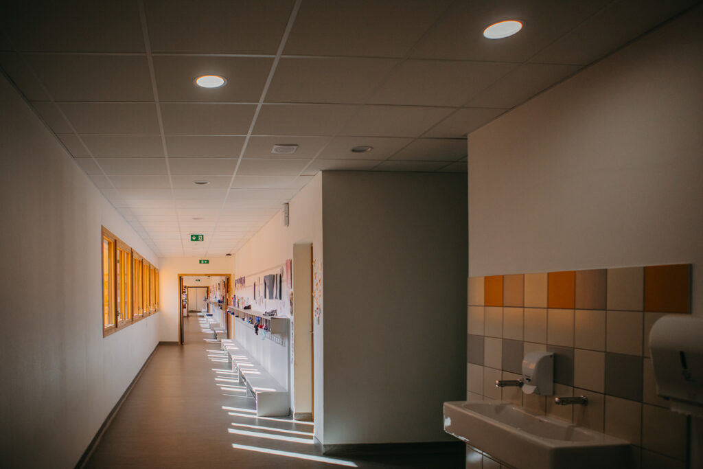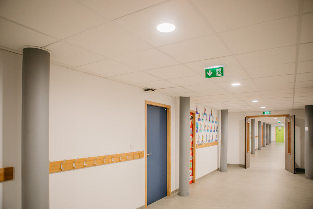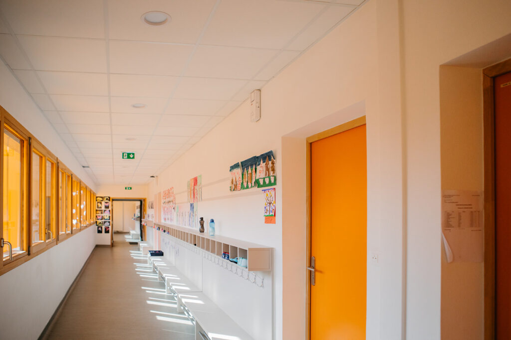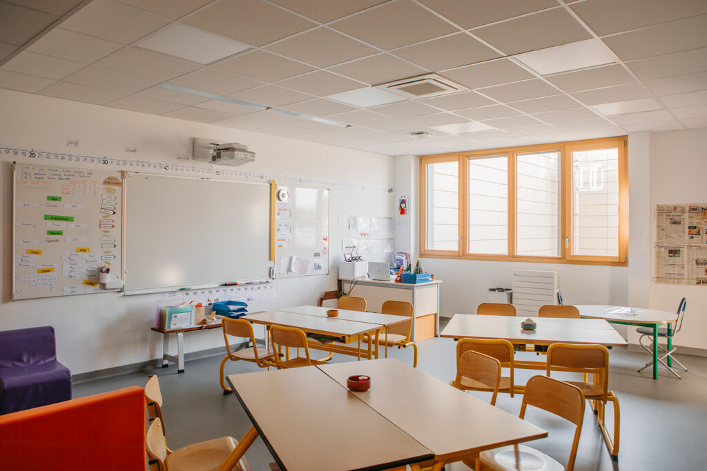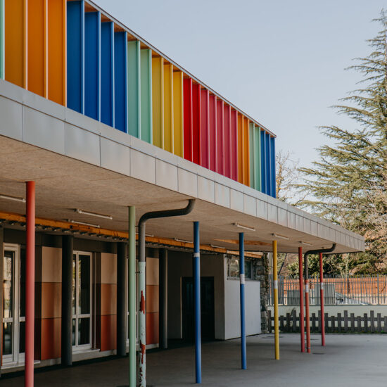 Une extension a été construite afin de créer 2 salles périscolaires, 6 salles élémentaires dédoublées qui pourront être remaniées en 3 salles de classe classiques grâce à une structure porteuse finement dessinée.