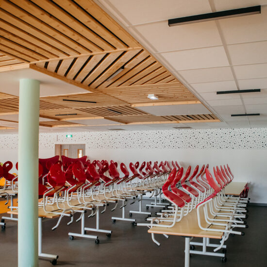 Le restaurant scolaire a également été remanié avec la création d’un office de réchauffage en lieu et place d’une cuisine de production ainsi que la restructuration de la salle de restauration.