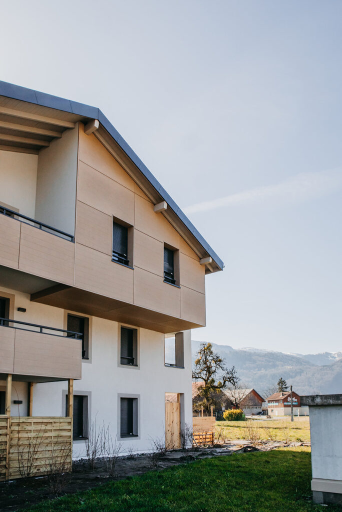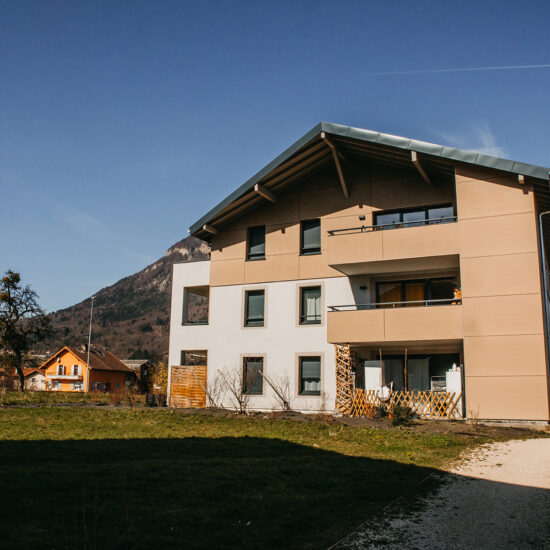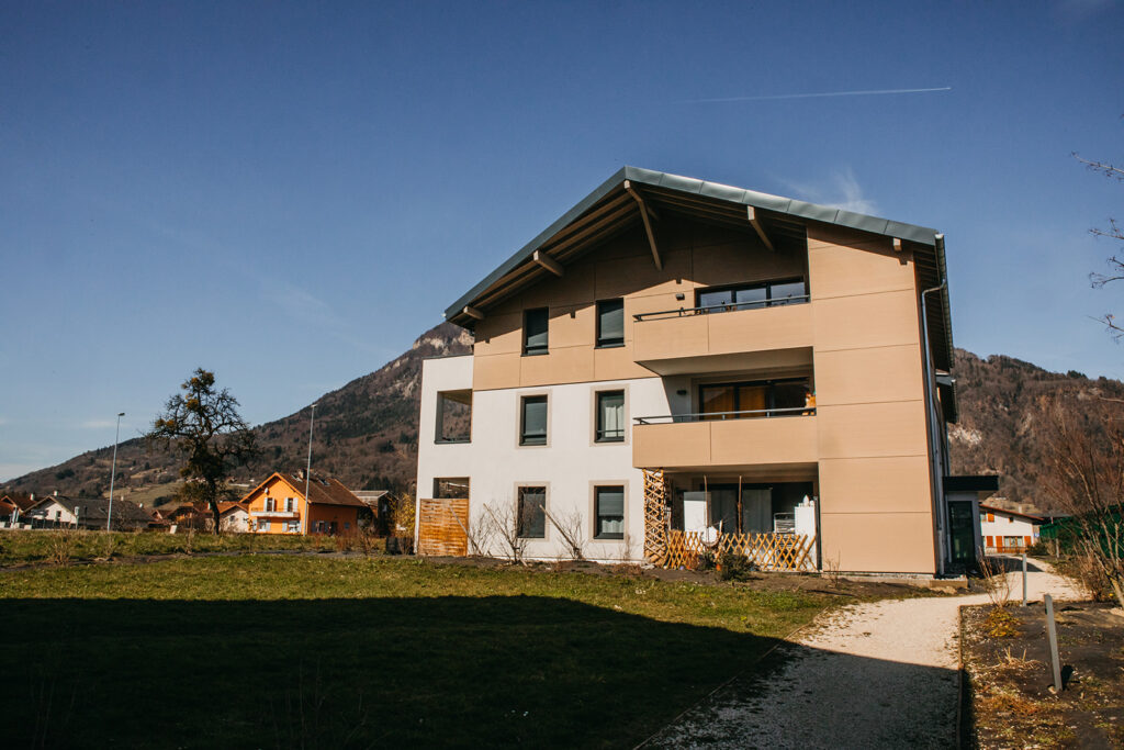 À MARIGNIER (74), nous avons conçu un ensemble de logements sociaux pensé pour s’intégrer harmonieusement dans son environnement tout en proposant des logements de qualité, fonctionnels et économes.