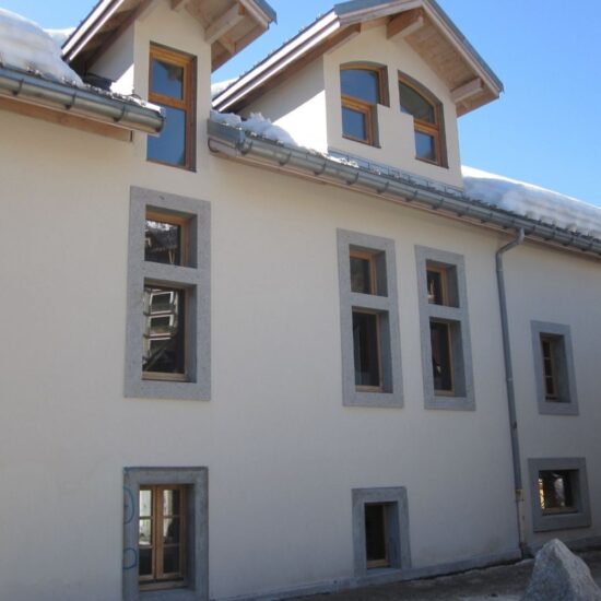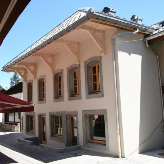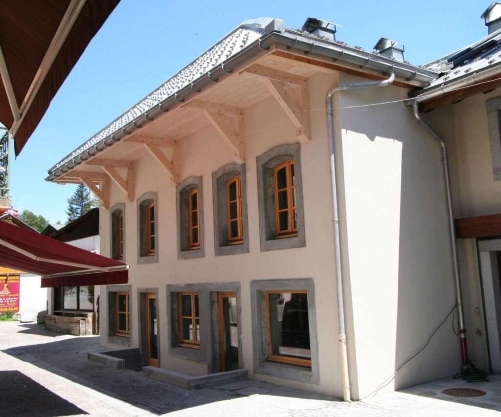 La façade Nord-Ouest sur la rue des Moulins est strictement gardée à l’identique. La volumétrie initiale de la toiture a également été conservée pour l’intérêt qu’elle suscite (référence à l’architecture régionale de la fin du XIXème).