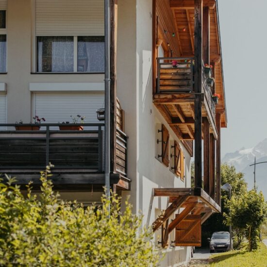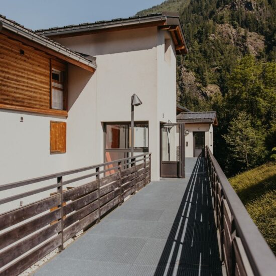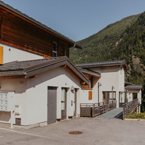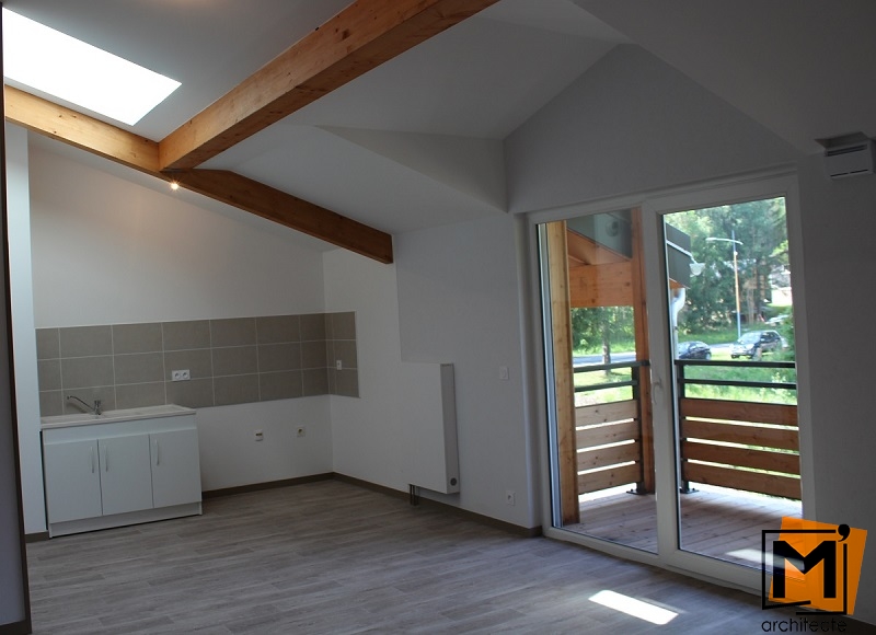 Le projet est composé de trois bâtiments implantés en cascade sur le terrain. Chaque bâtiment regroupe six logements répartis sur trois niveaux. L’accès au bâtiment se fait soit en véhicules depuis l’avenue des Alpages jusqu’aux stationnements sous les bâtiments, soit à pied par une coursive longeant les trois bâtiments sur leur façade Nord-Est. L’offre de logements sociaux propose quatorze T3, deux T2 et deux T4. Chaque logement bénéficie d’une terrasse et de larges baies vitrées pour la lumière et la vue.