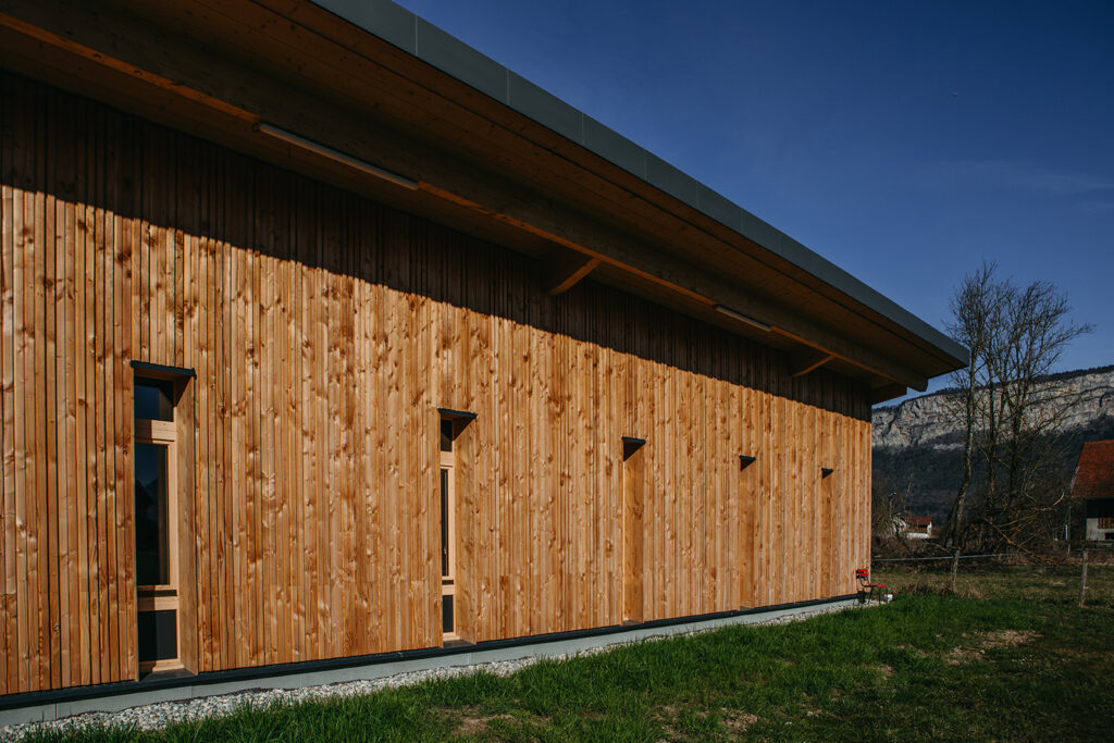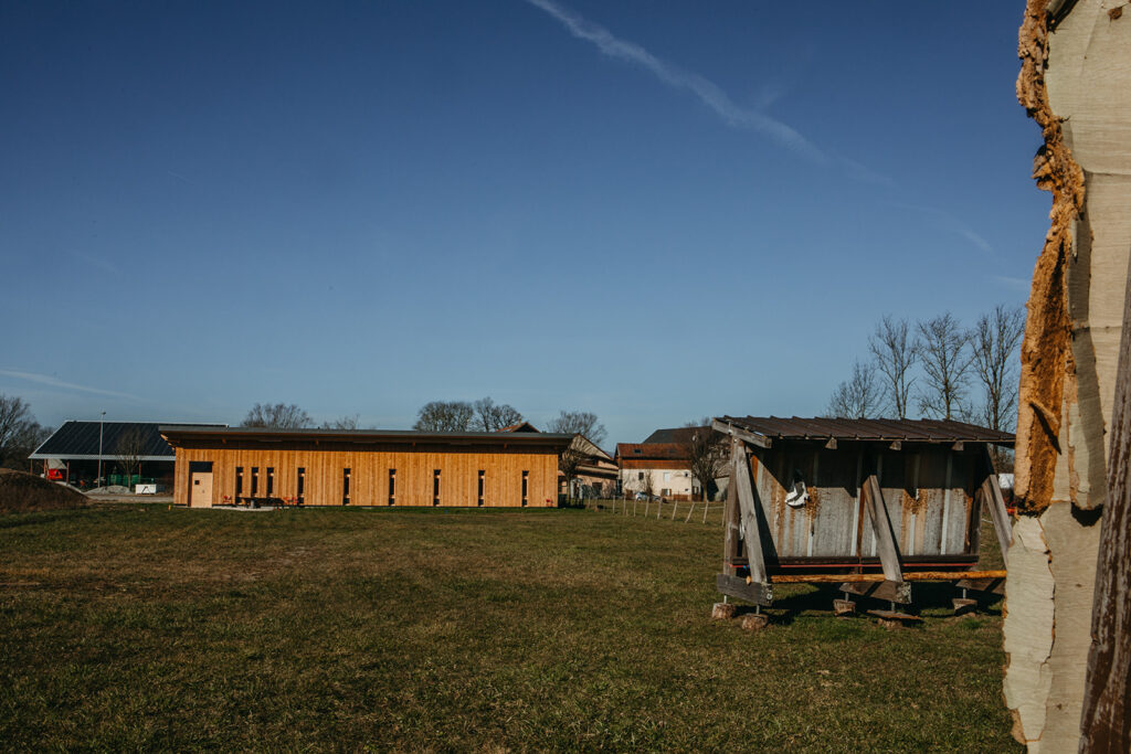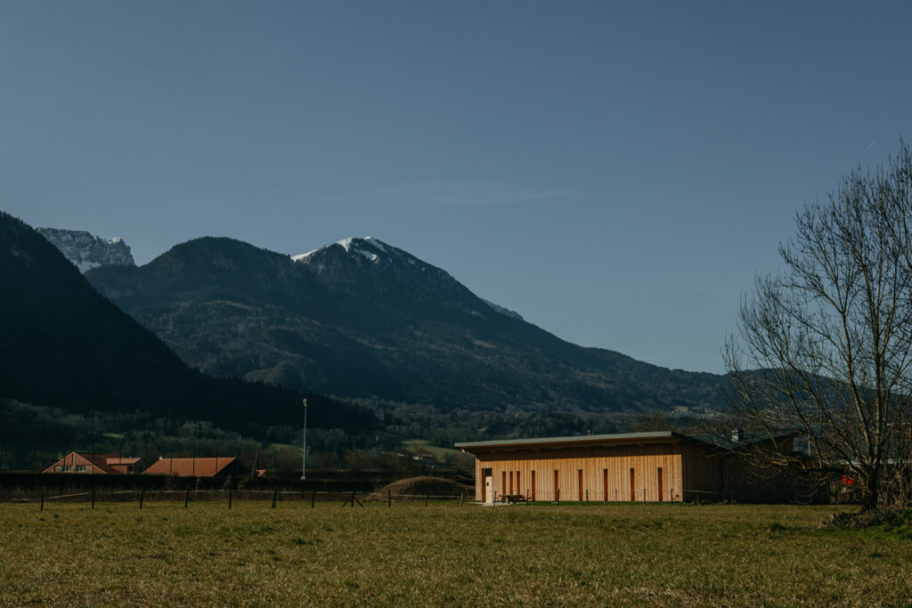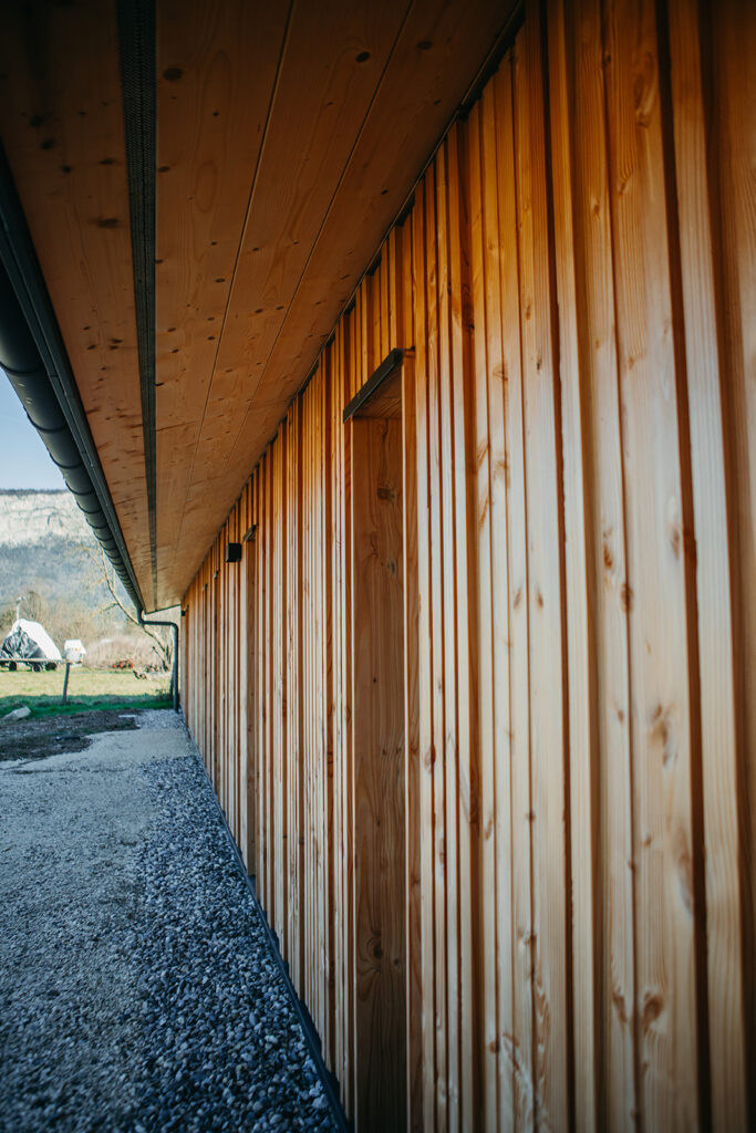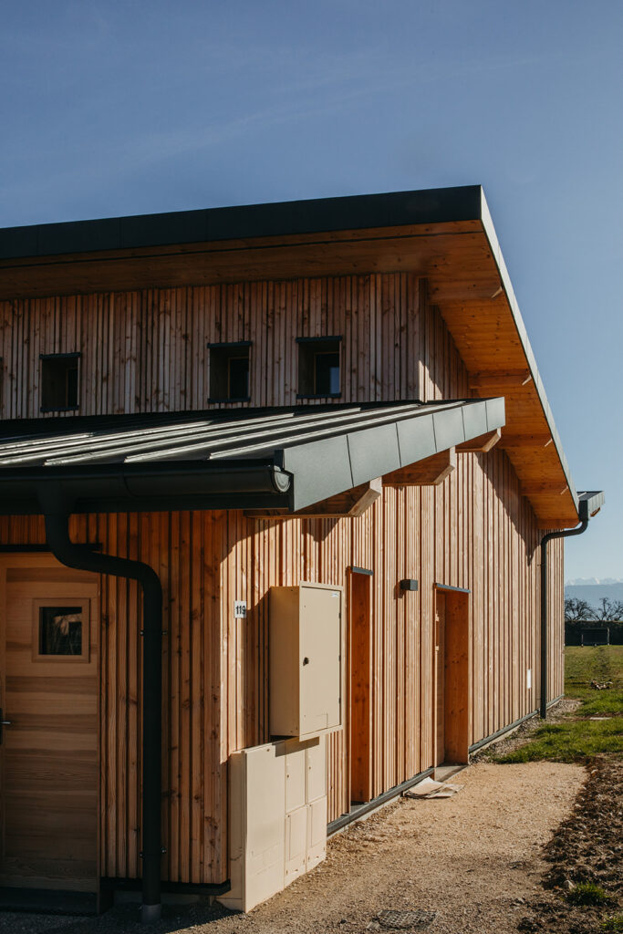 Le préau existant a donc été réhabilité pour créer des espaces techniques, tels que vestiaires, bureau et rangement.