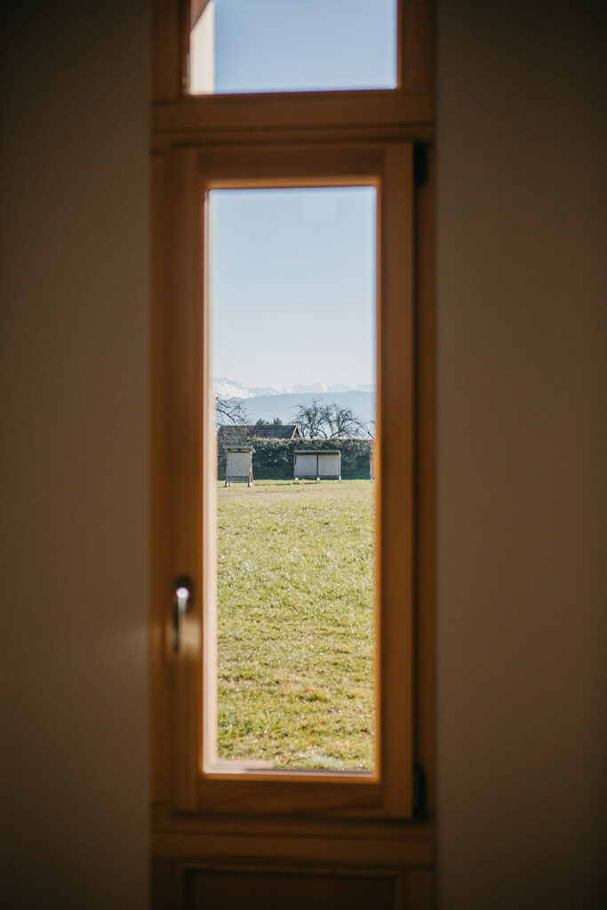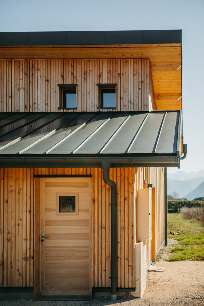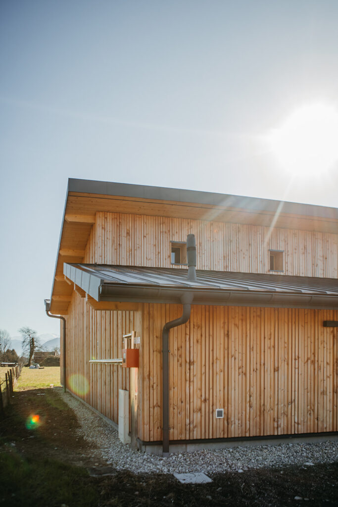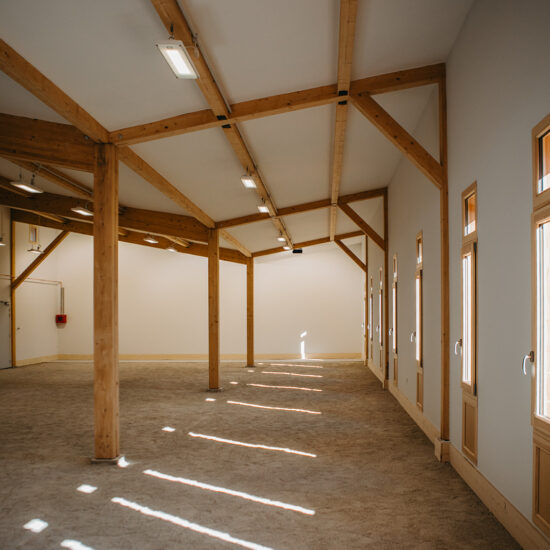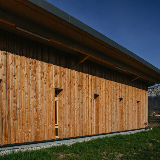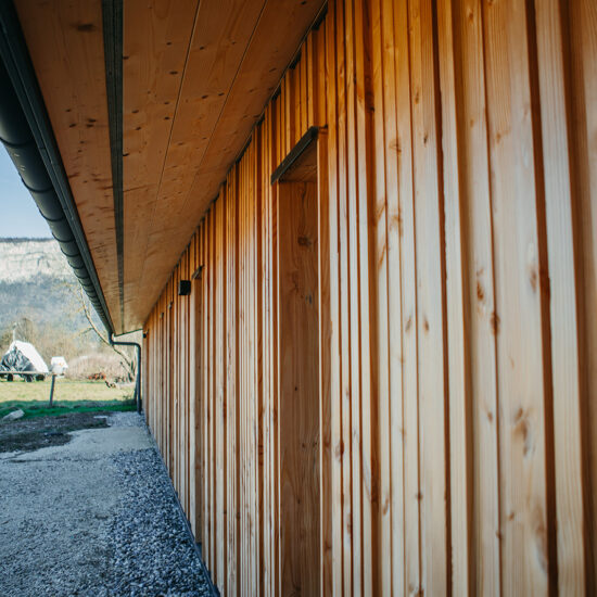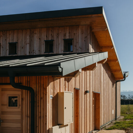 Le préau existant a donc été réhabilité pour créer des espaces techniques, tels que vestiaires, bureau et rangement.